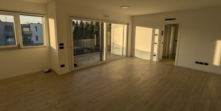 Trilocale a Piano Primo con soggiorno cucina a vista, due camere, disimpegno, un bagno, portico e terrazzo di 17 mq. Classe energetica A3 va