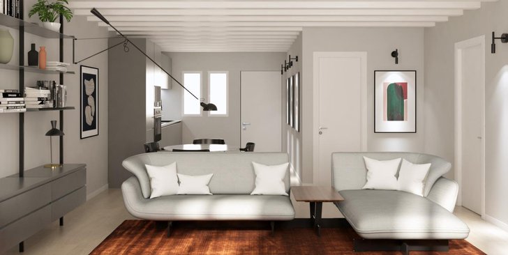 Fronte lago di Como, in prestigioso edificio di nuova ristrutturazione, appartamento n. 3 di mq 75 composto da 2 locali oltre servizi, po