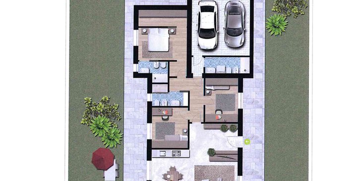 DIRETTAMENTE DAL COSTRUTTORE SENZA COSTI DI MEDIAZIONE Trilocale a Piano Terra con soggiorno con cucina, due camere, due bagni, portico e g