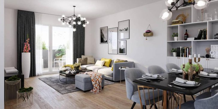 Un modo moderno e funzionale di vivere la casa. Ampio bilocale posto al secondo piano. Grande zona giorno con cucina moderna e funzionale ed