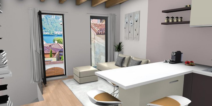 Vendita, Malgrate, nuovissimo bilocale con travi a vista finemente arredato , sito in contesto d'epoca completamente ristrutturato, con fini