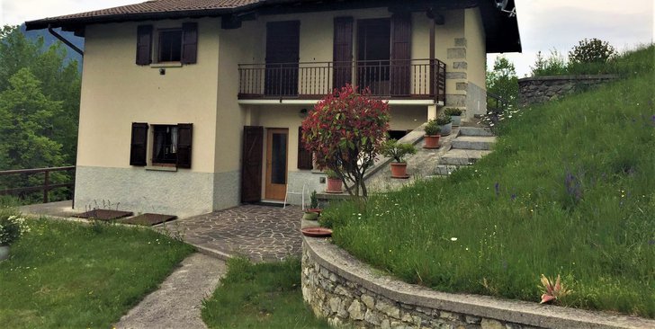In frazione a 2 km da Zogno, casa singola su piano unico composta da: piano terra= Box doppio/magazzino più cortile, piano rialzato= cuci