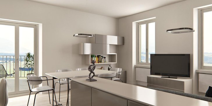 Fronte lago di Como, in prestigioso edificio di nuova ristrutturazione, appartamento n. 3 di mq 75 composto da 2 locali oltre servizi, po