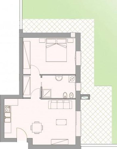 VENDITA DIRETTA DAL COSTRUTTORE SENZA MEDIAZIONE : classe "A" ( kwh/m² 19.79) Bilocale di 58 mq al piano terra composto da , soggiorno-cottu