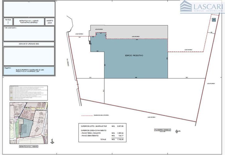 A pochi passi dalla strada prov. Francesca con rapido collegamento alla viabilità principale, in lotto recintato di mq. 5.297 capannone produttivo con altezza utile di mt. 4,50, annesso corpo uffici e servizi disposto su 2 livelli. Superficie coperta capannone mq. 1.434, uffici con piano rialzato di mq. 156 e servizi, spogliatoi e locali accessori al piano seminterrato di mq. 156. Area esterna mq. 3.707 di cui mq. 1.520 asfaltata. Cabina elettrica di trasformazione 160 kwh. Ulteriore possibilità edificatoria di mc. 914 per una slp massima di mq. 2.178. Immobile intestato a privati. Prezzo di vendita trattabile.