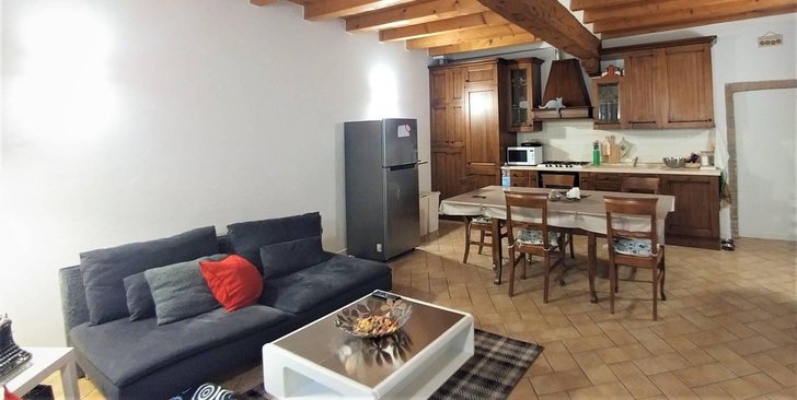 ALBINO - Comenduno: Luminosa zona giorno con cucina a vista. Ampio trilocale recentemente ristrutturato con pavimentazione in parquet, in tr