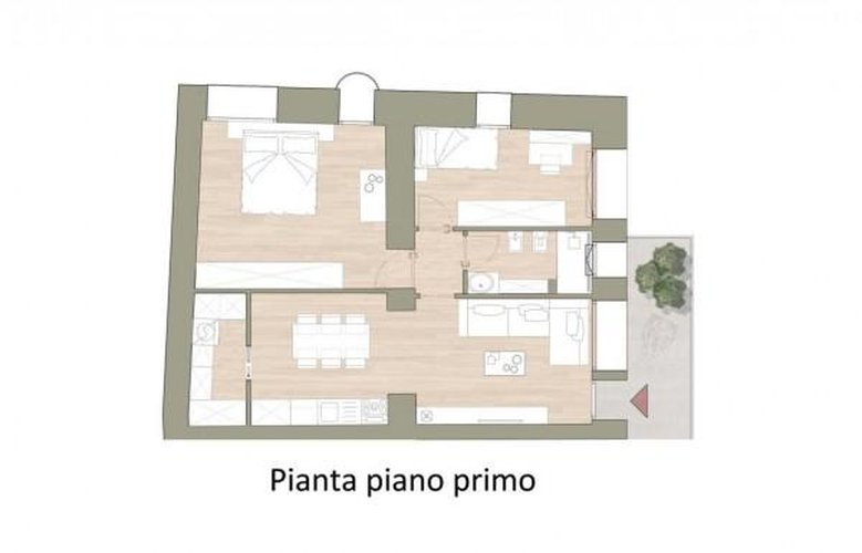 Centralissima al paese, pregevole ristrutturazione composta da 5 unità abitative (2 al piano terra, una al piano primo, una al piano secondo e un'appartamento in duplex piano primo e piano secondo) con caratteristiche uniche. Le finiture di ottimo livello prevedono: riscaldamento e raffrescamento a pavimento con sistema di ventilazione meccanica avente funzione anche deumidificante; cappotto esterno; ombreggianti in legno ricostruito/composito su parte delle facciate esterne; pavimenti interni in gres porcellanato; serramenti esterni in legno con doppi vetri con argon; oscuranti in legno tipo "scuretti"; portoncino blindato; cancello carrale automatizzato. Le soluzioni a disposizione sono: bilocale indipendente con giardino privato; ufficio a piano terra fronte strada; trilocale al piano primo; appartamento in duplex (piano primo e secondo) con travi in legno a vista; trilocale al piano secondo (stile attico) con travi in legno a vista. Per tutte le soluzioni immobiliari si possono acquistare posti auto coperti a prezzo di circa euro 10.000 cad. Le fotografie allegate si riferiscono a rendering di progetto e attuale stato di fatto, oltre a tutte le soluzioni descritte nelle planimetrie.
