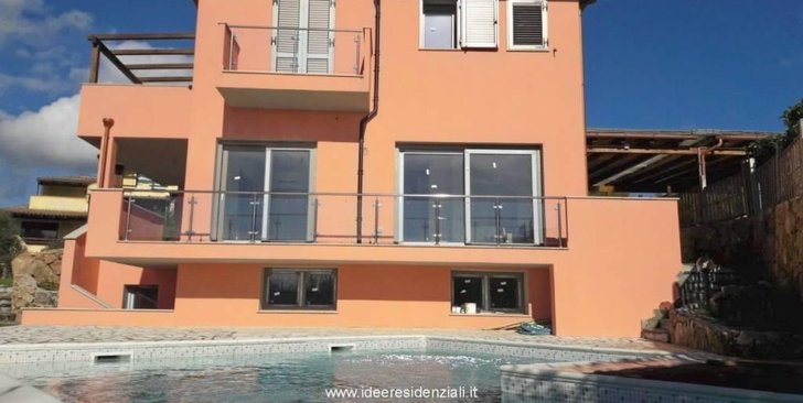 Bellissima villa bifamiliare, rifinita con graniti e colori mediterranei, indipendente su tre lati, composta al suo interno da ingresso, ampio soggiorno con cucina a vista, camera doppia, camera matrimoniale, disimpegno, ampia terrazza con vista mare favolosa; dalle scale si accede al piano primo, dove è presente un altra camera matrimoniale, bagno con doccia, cabina armadio, terrazza con vista mare. All'esterno è presente un ampio giardino con delle notevoli piante di ulivi. Attraverso una scala si accede al piano seminterrato, dove è presente un altro ambiente con bagno, una parte utilizzabile come deposito. La proprietà ha due posti auto, situati di fianco all'ingresso dell'abitazione.