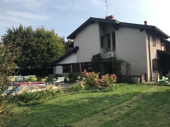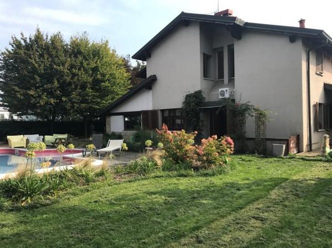 Bergamo, prima periferia, all’ interno di prestigioso contesto residenziale, disponiamo di importante soluzione immobiliare con ingressi pedonale e carrabile indipendenti , disposta su due piani più taverna, per un totale di mq. 320, il tutto circondato da circa 900 mq di giardino esclusivo con piscina. Internamente la soluzione immobiliare è stata rimodernata nella zona giorno, tutto parquet, camino, ampie vetrate che danno su bersò esclusivo. Zona notte composta da 4 camere più servizi, completano il tutto ampia taverna con camino, sala biliardo e box. C.e: f 168,80 kwh/mqa info: 34906020989 corrado [email protected] rif. 675